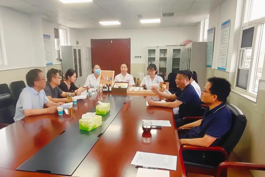 為深入挖掘中醫(yī)藥產(chǎn)業(yè)發(fā)展?jié)摿Γ其鸷又嗅t(yī)藥事業(yè)高質(zhì)量發(fā)展,6月20日上午,漯河市科學(xué)技術(shù)局黨組書記、局長效國強帶領(lǐng)中原食品實驗室行政副主任、實驗室服務(wù)中心主任高鵬,中原食品實驗室綜合行政部部長,實驗室服務(wù)中心綜合辦公室副主任張艷一行三人來院調(diào)研。漯河市中醫(yī)院紀委書記劉家棟,藥學(xué)部主任陳朝鋒以及中藥衍生品研發(fā)團隊和相關(guān)醫(yī)療專家等人員參加會議。