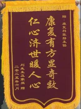 與此同時(shí),科室還收到一面印有“康復(fù)有方顯奇效,仁心濟(jì)世暖人心”字樣的錦旗。在患病期間,患者飽受腰痛、下肢麻木等癥狀折磨,嚴(yán)重影響日常生活。來(lái)到康復(fù)科后,科室負(fù)責(zé)人張靜帶領(lǐng)科室團(tuán)隊(duì)根據(jù)其病情制定個(gè)性化針灸治療方案,通過(guò)精準(zhǔn)取穴、規(guī)范施針,配合專(zhuān)業(yè)康復(fù)指導(dǎo),逐步減輕患者病痛,助其恢復(fù)正常生活?;颊邽楸砀屑?,特贈(zèng)錦旗,錦旗上的話語(yǔ)是對(duì)科室治療效果的高度認(rèn)可。