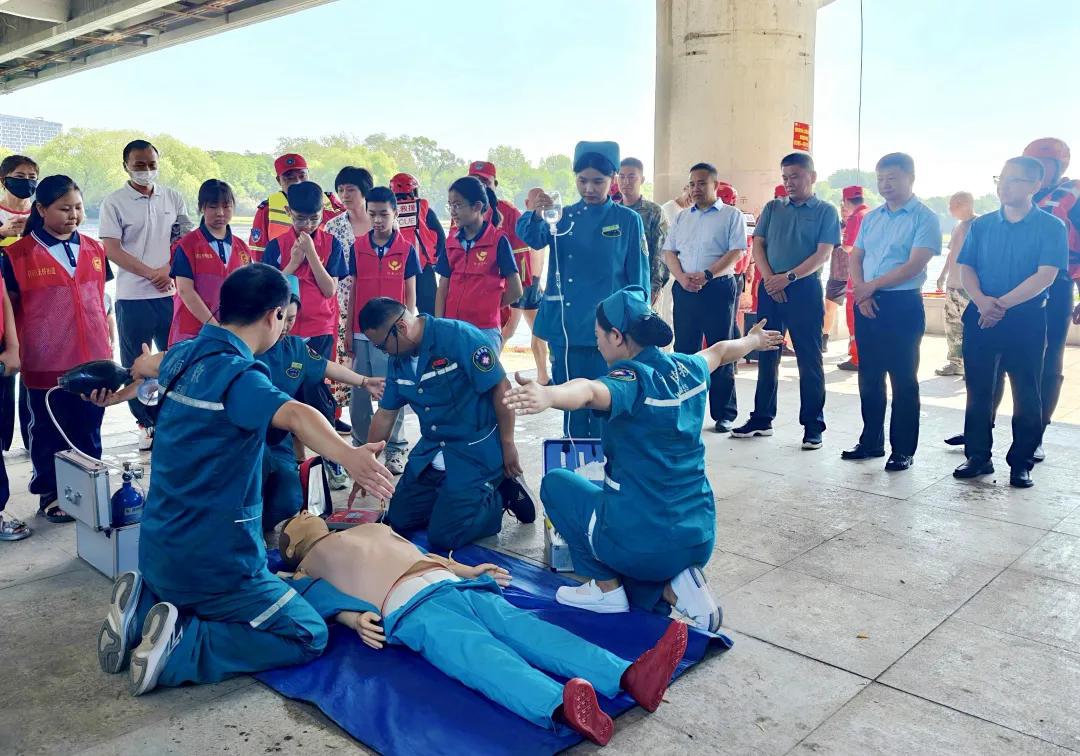 未雨綢繆,練為實戰(zhàn)。6月27日上午,在市國防動員辦公室統(tǒng)籌組織下,市二院黨委書記魏松、副院長劉橋帶領醫(yī)院防溺水急診醫(yī)療團隊9名隊員與十余名志愿者,全程參與2025年漯河市國防動員專業(yè)保障隊伍防溺水應急演練,與市區(qū)兩級國動辦、西城區(qū)消防救援大隊、市國防動員水上志愿者們一道,圓滿完成了全流程實戰(zhàn)化救援演練。