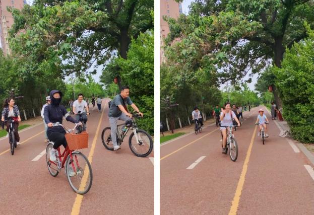 本次活動(dòng)以“喜迎七一”為主題,將愛黨愛國(guó)教育、團(tuán)隊(duì)建設(shè)與健康運(yùn)動(dòng)有機(jī)結(jié)合。青年朋友們精神飽滿地踏上單車,沿著精心規(guī)劃的騎行路線出發(fā)。騎行隊(duì)伍宛如一條流動(dòng)的青春彩帶,穿梭于沙澧河畔的綠樹碧水之間。大家一路歡聲笑語,洋溢著青春的活力與朝氣,以實(shí)際行動(dòng)踐行低碳環(huán)保理念,成為景區(qū)一道亮麗的風(fēng)景線。