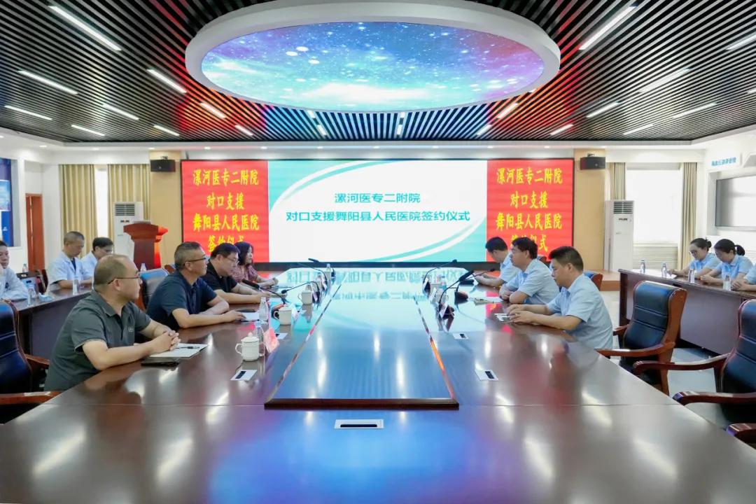 7月1日,在舞陽縣人民醫(yī)院會議室舉行漯河醫(yī)專二附院對口支援舞陽縣人民醫(yī)院協(xié)議書簽訂儀式。漯河醫(yī)專二附院黨委書記柴運洪、副院長鄭建新、醫(yī)務(wù)科主任徐向峰,舞陽縣衛(wèi)健委副主任楊云峰、婦幼股股長張艷麗,舞陽縣人民醫(yī)院黨委委員、副院長魏廷舉、醫(yī)務(wù)科科長馬瓊,以及兩院專家代表共同出席。