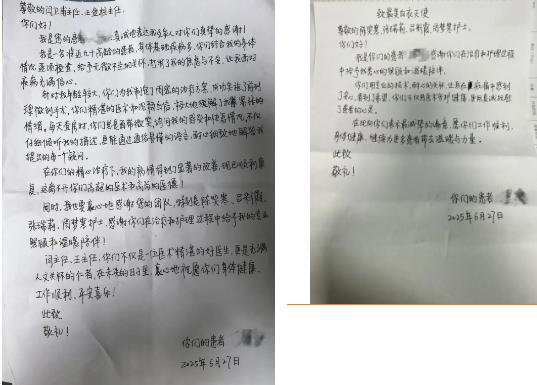 在漯河醫(yī)專二附院泌尿-肛腸外科全體醫(yī)護(hù)人員的精心治療和悉心照料下,患者術(shù)后恢復(fù)良好,順利出院。出院之際,患者特意寫下兩張感謝信,分別贈予閆衛(wèi)甫主任團(tuán)隊和護(hù)理團(tuán)隊。信中,老人深情地寫道:“你們用專業(yè)的技術(shù),耐心的關(guān)懷,讓我再在病痛中感到了安心,看到了希望,你們不僅用醫(yī)術(shù)守護(hù)健康,更用真誠撫慰了患者的心靈。”(盧闖 田向榮 劉旭 袁錦鈺)