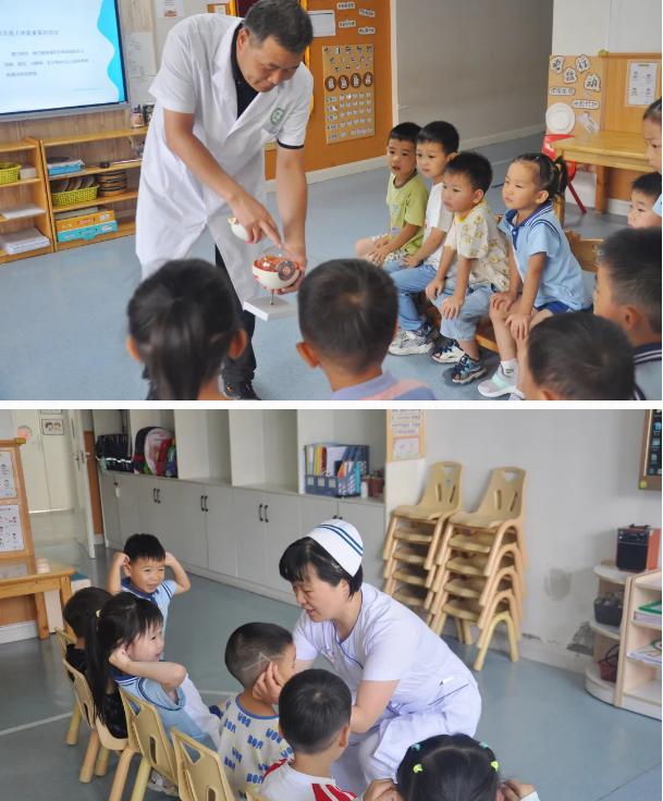 7月25日,由王中偉、華瑩老師帶來眼科、口腔科防護知識,他們帶著眼球、口腔模型,讓孩子們更直觀地了解自己身體的器官,再結(jié)合老師講解的穴位按摩緩解眼疲勞,中藥護齒小妙方等,更易懂易學,引導孩子們用傳統(tǒng)智慧守護自身健康。