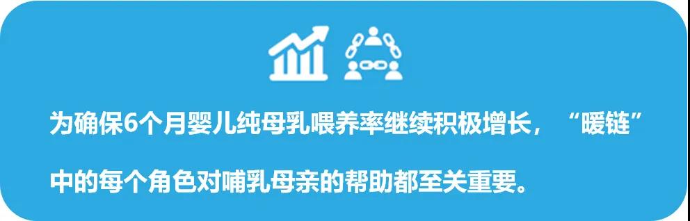 “暖鏈”行動是一項保護、促進和支持母乳喂養(yǎng)的全球性行動,倡導以母親和嬰兒為核心,遵循生命最初1000天的時間軸,所有支持母乳喂養(yǎng)的醫(yī)務人員及社會各界,都是暖鏈中的一環(huán),通過各環(huán)節(jié)之間的協(xié)作,為母嬰家庭傳遞一致的信息并提供支持措施,幫助母親和嬰兒獲得持續(xù)的、滿意的、有效的母乳喂養(yǎng)體驗。