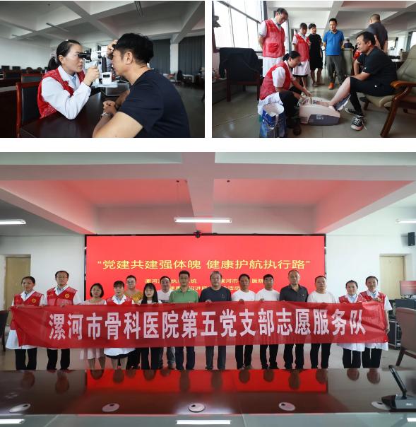 為深化黨建引領(lǐng)作用,增強(qiáng)黨組織凝聚力,同時(shí)關(guān)愛干警身心健康,8月13日,受漯河市中級(jí)人民法院邀請(qǐng),漯河醫(yī)專二附院(漯河市骨科醫(yī)院、漯河市立醫(yī)院)第五黨支部、漯河市中級(jí)人民法院執(zhí)行局黨支部與源匯區(qū)人民法院執(zhí)行局黨支部聯(lián)合開展“黨建共建強(qiáng)體魄 健康護(hù)航執(zhí)行路”主題黨建活動(dòng)。第五黨支部和社會(huì)工作部積極協(xié)調(diào)組織智能骨科、眼科、心理學(xué)醫(yī)療專家及志愿者,為該單位職工帶來(lái)專業(yè)的健康知識(shí)講座與現(xiàn)場(chǎng)診療服務(wù)。
