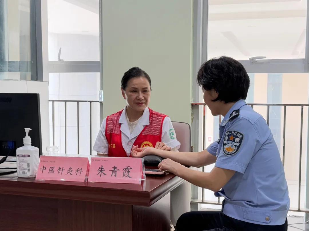 8月18日下午,市二院中醫(yī)針灸科主任朱青霞帶領10余名科室專家、志愿者走進市公安局,開展專場義診活動。作為醫(yī)院“中醫(yī)藥文化走進機關”系列活動的重要一環(huán),此次服務精準對接公安民警輔警的職業(yè)健康需求,將中醫(yī)特色診療送到平安守護一線。