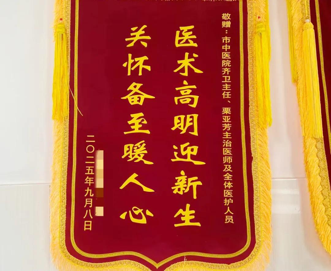 一面錦旗,贈給婦產(chǎn)科主任齊衛(wèi)、主治醫(yī)師栗亞芳及婦產(chǎn)科團隊。此前,產(chǎn)婦因超預(yù)產(chǎn)期且羊水過少,由栗亞芳醫(yī)生緊急收住入院。從接診起,栗醫(yī)生便持續(xù)給予產(chǎn)婦心理安撫,緩解產(chǎn)婦焦慮。入院后齊主任和栗醫(yī)生全面評估產(chǎn)婦的綜合情況決定為其終止妊娠。產(chǎn)婦發(fā)動宮縮后,栗醫(yī)生全程陪同產(chǎn)程,指導(dǎo)用力技巧,助力其順利陰道分娩。因新生兒受羊水三度污染需轉(zhuǎn)兒科治療,栗醫(yī)生每日主動對接兒科、反饋寶寶情況,同時指導(dǎo)產(chǎn)婦產(chǎn)后飲食、運動、排奶、暖心安撫產(chǎn)婦,現(xiàn)寶媽和寶寶恢復(fù)良好,產(chǎn)婦和家屬都很感激,特送錦旗表示感謝!