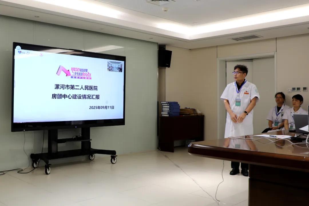 現(xiàn)場(chǎng)核查階段,市二院房顫中心負(fù)責(zé)人、心血管內(nèi)科病區(qū)主任李慧新從醫(yī)院基本情況、心血管內(nèi)科概況、房顫中心建設(shè)概況以及對(duì)房顫中心建設(shè)項(xiàng)目的建議四個(gè)方面進(jìn)行了匯報(bào)。