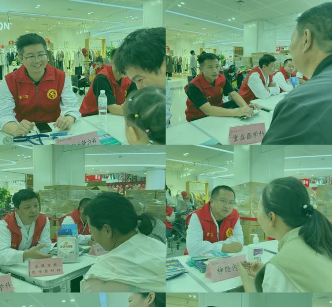 10月3日,由急診科、重癥醫(yī)學(xué)科、兒童重癥監(jiān)護室、中醫(yī)針灸科、心血管內(nèi)科、神經(jīng)外科、小兒消化內(nèi)科、社區(qū)服務(wù)中心組成的專家志愿者團隊走進丹尼斯商場,繼續(xù)為市民提供免費的血壓測量、艾灸、AI診脈等診療服務(wù),并為70余名市民建立了健康檔案,方便后續(xù)跟蹤與健康管理。