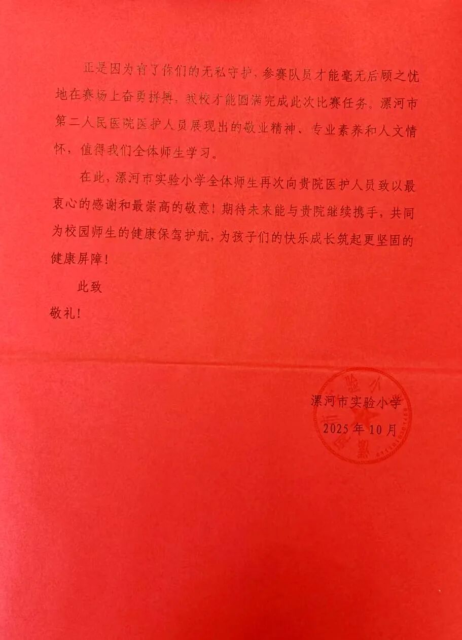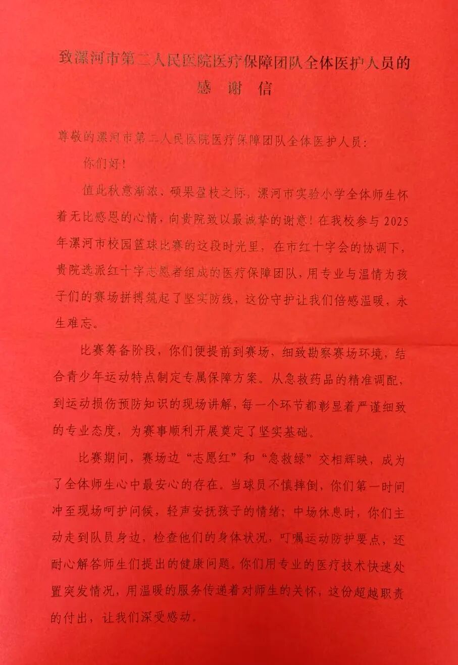 市紅十字會、市實驗小學(xué)贈送錦旗感謝信致謝漯河市二院