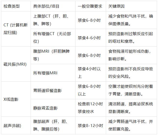 總而言之,是否需要空腹主要取決于檢查的部位和方式。腹部檢查和所有增強掃描是要求空腹的兩大主要類別。