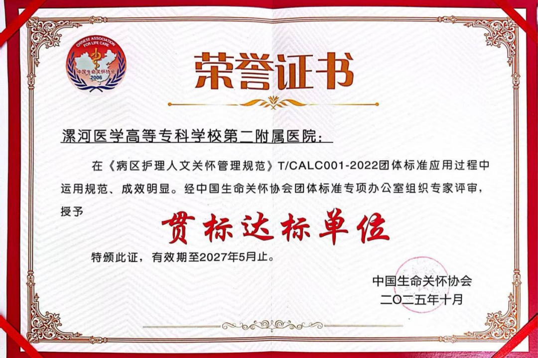 10月30日—11月2日,由國家生命關(guān)懷協(xié)會(huì)主辦、華中科技大學(xué)同濟(jì)醫(yī)學(xué)院附屬協(xié)和醫(yī)院承辦的國家級繼續(xù)教育項(xiàng)目“醫(yī)院護(hù)理人文關(guān)懷標(biāo)準(zhǔn)化建設(shè)”會(huì)議在武漢召開。此次大會(huì)以“關(guān)懷實(shí)踐 標(biāo)準(zhǔn)引領(lǐng)”為主題,匯聚了來自29個(gè)省(市、自治區(qū))的護(hù)理界領(lǐng)導(dǎo)與專家,共同探討與展示醫(yī)學(xué)人文關(guān)懷標(biāo)準(zhǔn)化建設(shè)的前沿理論與實(shí)踐成果。在備受矚目的授牌儀式環(huán)節(jié),大會(huì)正式公布了《病區(qū)護(hù)理人文關(guān)懷管理規(guī)范》團(tuán)體標(biāo)準(zhǔn)第二批貫標(biāo)驗(yàn)收評審結(jié)果,并現(xiàn)場為達(dá)標(biāo)單位授牌、頒發(fā)證書。漯河醫(yī)專二附院(漯河市骨科醫(yī)院、漯河市立醫(yī)院)憑借在人文護(hù)理領(lǐng)域扎實(shí)的工作成效和卓越的服務(wù)水平,成功通過評審,被正式授予“《病區(qū)護(hù)理人文關(guān)懷管理規(guī)范》團(tuán)體標(biāo)準(zhǔn)貫標(biāo)達(dá)標(biāo)單位”。