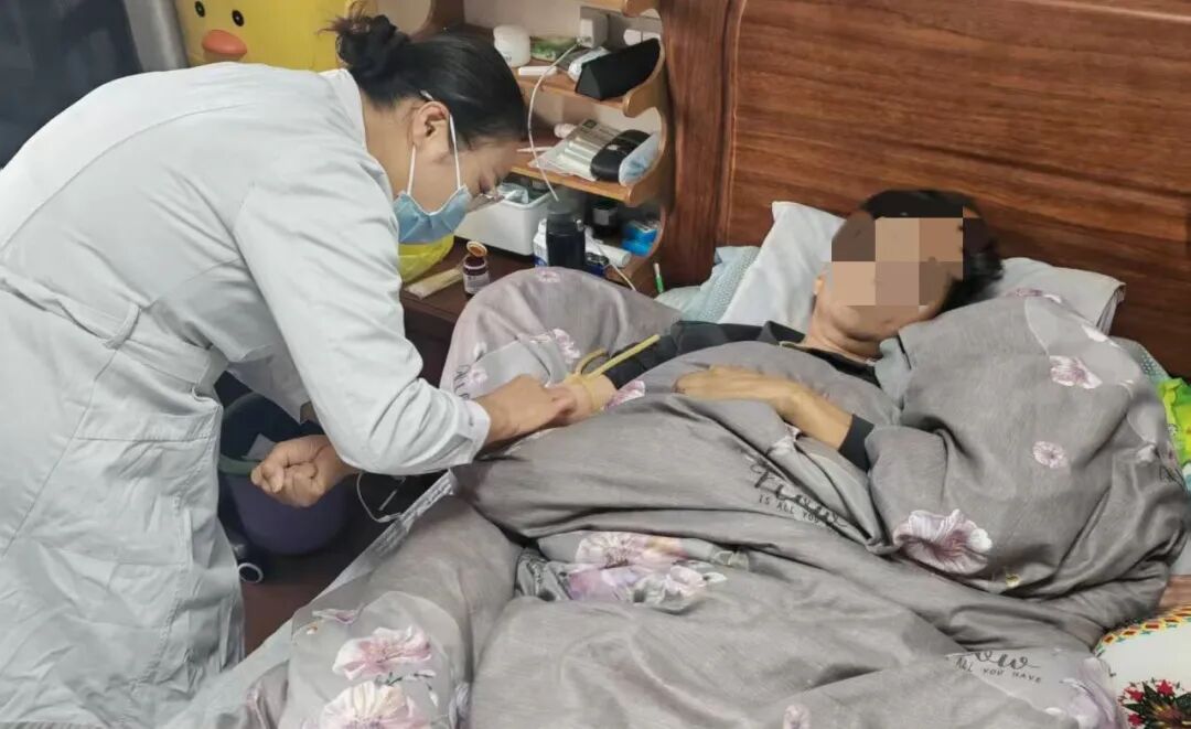 90歲高齡的老爺子同樣受益于這項(xiàng)服務(wù)。老人因腦出血術(shù)后長期臥床且意識(shí)模糊,需靠鼻飼管維持營養(yǎng),家人將其安置于敬老院后,每月胃管更換成了棘手難題。李護(hù)士主動(dòng)承接這項(xiàng)長期任務(wù),每月定期前往敬老院為老人換管。面對失能且意識(shí)不清的患者,她操作熟練、動(dòng)作輕柔,保障每次更換安全順利,有效預(yù)防了胃管長期留置引發(fā)的并發(fā)癥。