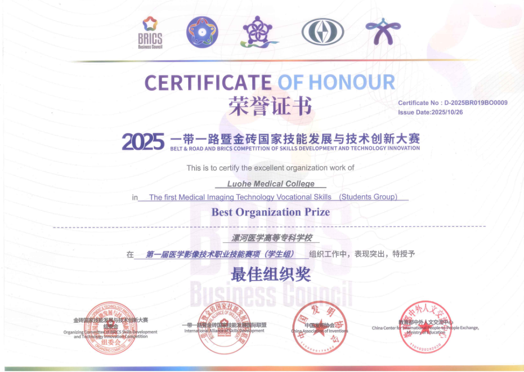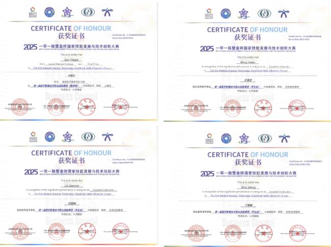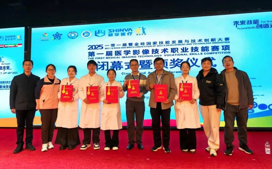 10月23日至26日,2025“一帶一路”暨金磚國(guó)家技能發(fā)展與技術(shù)創(chuàng)新大賽——醫(yī)學(xué)影像技術(shù)職業(yè)技能賽項(xiàng)在北京衛(wèi)生職業(yè)學(xué)院舉行。醫(yī)學(xué)影像團(tuán)隊(duì)在周山主任帶領(lǐng)下,與來(lái)自全國(guó)61所職業(yè)院校的優(yōu)秀師生同場(chǎng)競(jìng)技,師生團(tuán)隊(duì)奮勇?tīng)?zhēng)先、發(fā)揮出色,在所有學(xué)生實(shí)踐技能比賽及教師教學(xué)比賽中均獲優(yōu)異獎(jiǎng)項(xiàng)。