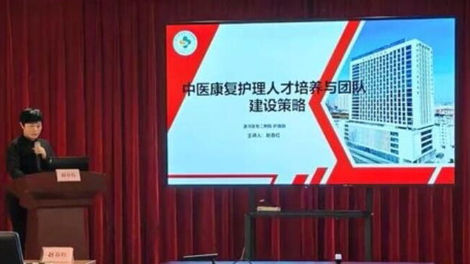 趙春紅主任以《中醫(yī)康復護理人才培養(yǎng)與團隊建設策略》為題,詳細講解了中醫(yī)護理發(fā)展,要以團隊建設為主,聚焦“協(xié)同賦能+文化凝聚”:搭建層級化人才梯隊,形成“資深專家引領、骨干人才支撐、青年人才成長”的發(fā)展格局。