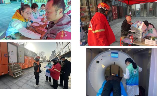 在紀(jì)委書記劉國鋒的帶領(lǐng)下,來自內(nèi)科、超聲科、醫(yī)學(xué)影像科等科室的骨干醫(yī)護(hù)組建專項(xiàng)志愿者團(tuán)隊(duì),針對外賣小哥長期騎行、作息不規(guī)律的職業(yè)特性,定制了“高效精準(zhǔn)”的健康篩查方案——不僅涵蓋心電圖、甲狀腺彩超、血壓檢測、骨密度檢測等基礎(chǔ)項(xiàng)目,更調(diào)配院內(nèi)先進(jìn)移動(dòng)CT車進(jìn)駐,讓小哥無需中斷工作,利用送餐間隙就能完成全方位健康評估。