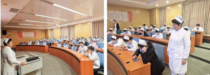 護(hù)理部主任趙春紅深入考場巡視,她表示,技能競賽是臨床實(shí)習(xí)學(xué)習(xí)成果的集中展示,旨在提高實(shí)習(xí)護(hù)生專業(yè)技能水平和職業(yè)素養(yǎng),她鼓勵(lì)全體參賽選手沉著應(yīng)戰(zhàn)、發(fā)揮出最佳水平,以嚴(yán)謹(jǐn)?shù)膽B(tài)度和規(guī)范的操作展現(xiàn)本院護(hù)理實(shí)習(xí)生的專業(yè)風(fēng)采。