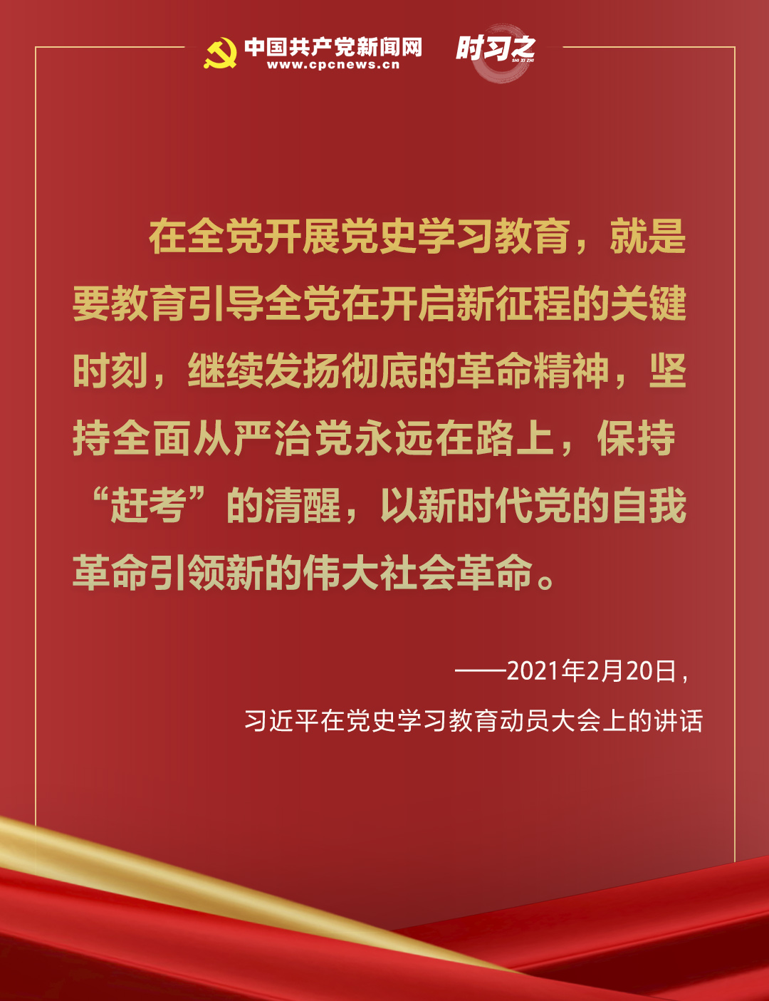歷史不僅蘊藏著我們“從哪里來”的密碼,也是標(biāo)定我們“走向何方”的路標(biāo)。當(dāng)前,正在全黨集中開展的黨史學(xué)習(xí)教育,正是為了把黨的歷史學(xué)習(xí)好、總結(jié)好,使我們的黨永遠(yuǎn)不變質(zhì)、我們的紅色江山永遠(yuǎn)不變色。