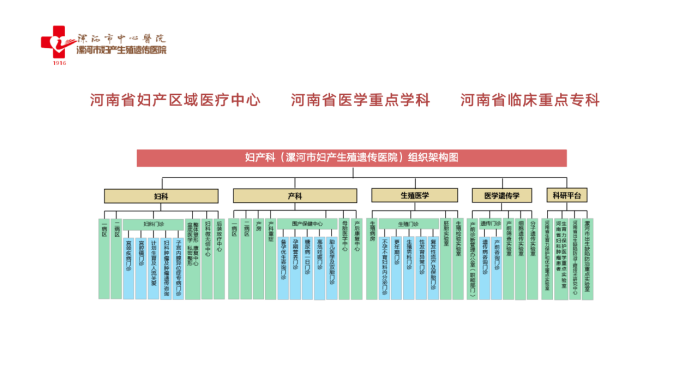 目前,國內外大多數(shù)綜合醫(yī)院婦產科僅擁有婦科和產科兩個學科,而漯河市中心醫(yī)院擁有婦科、產科、生殖、遺傳4個學科。