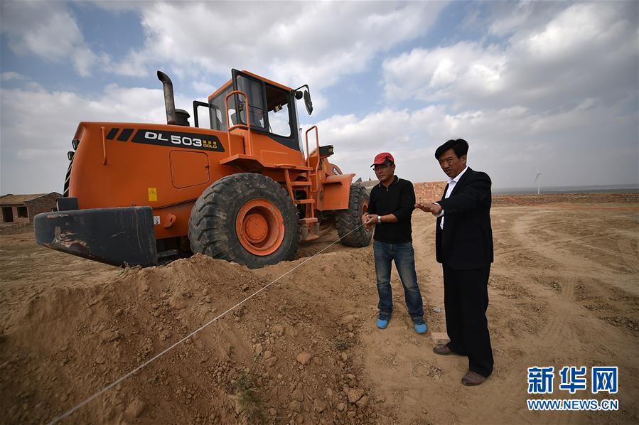 2017年10月20日,在寧夏吳忠市鹽池縣曾記畔村,十九大代表、村黨支部書(shū)記朱玉國(guó)(右)在工地查看村飼料加工廠的建設(shè)情況。初心,穿越時(shí)空,永志不忘。 使命,接續(xù)擔(dān)當(dāng),催人奮進(jìn)。 “為中國(guó)人民謀幸福,為中華民族謀復(fù)興”,一個(gè)走過(guò)近百年歷程的世界第一大黨,在其第十九次全國(guó)代表大會(huì)上如此宣誓她的初心和使命。歲月磨礪,黨心民心,始終心心相印。當(dāng)擁有8900多萬(wàn)黨員的黨始終把人民置于最高位置,始終把人民對(duì)美好生活的向往作為奮斗目標(biāo),始終同人民想在一起、干在一起,這個(gè)黨領(lǐng)導(dǎo)13億多人民決勝全面建成小康社會(huì)、建設(shè)新時(shí)代中國(guó)特色社會(huì)主義的事業(yè)必將取得勝利!中華民族偉大復(fù)興的中國(guó)夢(mèng)必將實(shí)現(xiàn)!新華社記者 李然 攝