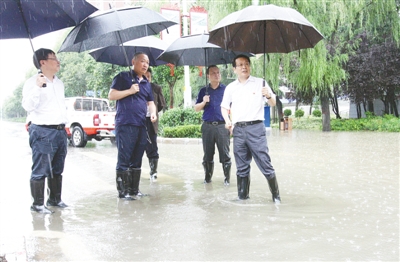 7月22日,市委書記蒿慧杰察看指導市區(qū)積水點排水和防汛工作。本報記者 王慶建 攝