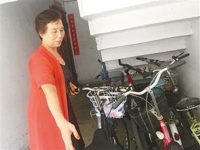 田愛雪將停放在樓梯間的自行車移到外面。