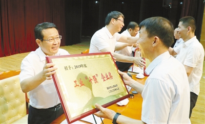 9月2日,市委書(shū)記蒿慧杰向工業(yè)“十強(qiáng)”企業(yè)代表頒獎(jiǎng)。記者 王慶建 張 佩 攝