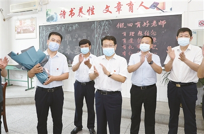 (記者 張軍亞)9月8日,在全國第36個(gè)教師節(jié)來臨之際,市委書記蒿慧杰帶領(lǐng)市直有關(guān)部門負(fù)責(zé)同志深入部分學(xué)校,調(diào)研教育工作,看望慰問教師代表,并通過他們向全市廣大教育工作者致以節(jié)日的祝賀。他強(qiáng)調(diào),要深入貫徹習(xí)近平總書記關(guān)于教育工作的重要講話和指示批示精神,慎終如始抓好秋冬季疫情防控,扎實(shí)推動(dòng)教育事業(yè)高質(zhì)量發(fā)展。李建濤、栗社臣、周新民、顧文明、王春陽、趙建釗參加。
