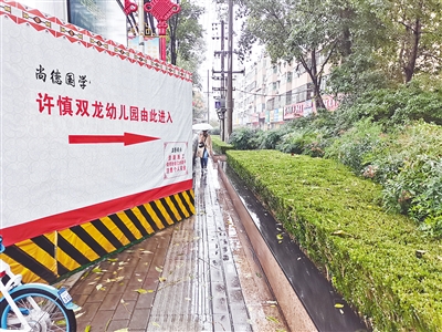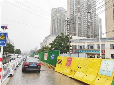 “這么長(zhǎng)的一段路都被圍擋圍了起來,中間沒有留出入口,幼兒園也在圍擋內(nèi),我們每天接送學(xué)生都要經(jīng)過這里,太不方便了。”一名送孩子上幼兒園的家長(zhǎng)告訴記者,圍擋外的交通也相當(dāng)擁擠。