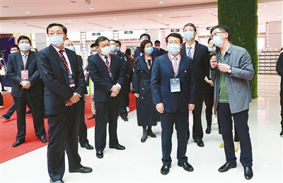11月1日,市四大班子領(lǐng)導(dǎo)帶領(lǐng)市直相關(guān)部門負(fù)責(zé)同志察看第十八屆中國(guó)(漯河)食品博覽會(huì)展館。本報(bào)記者 王慶建 攝