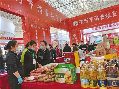 “全面小康,一個不落”“脫貧攻堅大舞臺,有你參與更精彩”“以購代捐解民憂,消費扶貧助發(fā)展”……在漯河市消費扶貧展會上,紅色背景墻上處處都是與“扶貧”相關(guān)的宣傳標(biāo)語。香菇、鴨蛋、紅薯等富有特色的農(nóng)產(chǎn)品令采購商們收獲滿滿。