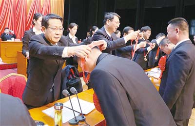 12月22日,市領導蒿慧杰、劉尚進等為受表彰的先進個人、先進集體和優(yōu)秀共產黨員、先進基層黨組織代表頒獎。記者 王慶建 攝