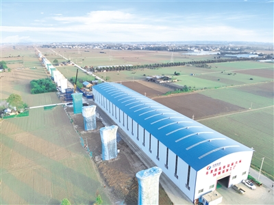 沿著平漯周高鐵線路向東北方向行進(jìn),記者來(lái)到了平漯周高鐵中國(guó)電建站前六標(biāo)漯河示范區(qū)制梁場(chǎng)。該制梁場(chǎng)位于黑龍?zhí)舵?zhèn)老應(yīng)村,劃分為原材料實(shí)驗(yàn)區(qū)、混凝土拌和區(qū)、鋼筋加工區(qū)、制梁區(qū)、存梁區(qū)等7個(gè)功能區(qū)。