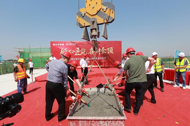 5月18日上午,杉林萬創(chuàng)產(chǎn)業(yè)園內彩旗招展,一期A6定制廠房封頂儀式正在舉行,這是該園區(qū)首批封頂?shù)亩ㄖ茝S房,此次封頂儀式標志著項目建設取得階段性重要成果。漯河市郾城區(qū)副區(qū)長趙方略、郾城區(qū)先進制造業(yè)開發(fā)區(qū)管委會主任陳磊、杉林集團董事長王超權、總裁常軍、副總裁梁田、王榮、陳江、杉林萬創(chuàng)產(chǎn)業(yè)園總經(jīng)理李躍剛及定制廠房業(yè)主等參加封頂儀式。