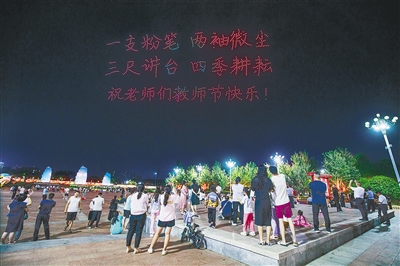 9月10日晚,“慶祝第四十個(gè)教師節(jié)”主題無(wú)人機(jī)表演在紅楓廣場(chǎng)舉行。