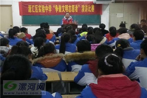 北風凜凜,寒風刺骨。12月27日星期二晚7點,源匯區(qū)實驗中學大會議室里,燈火輝煌,人頭攢動。這里正在舉行源匯區(qū)實驗中學“爭做文明志愿者”演講比賽。隨著八二班學生的閃亮登場,爭做文明志愿者演講比賽正式拉開帷幕。在現(xiàn)場觀眾的歡呼聲中,19名學生先后登臺展示了各自的口才。根據(jù)學生們的表現(xiàn),比賽評委會評出了三個等次的獎項。