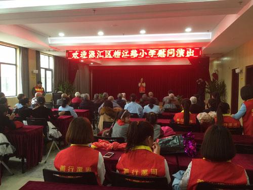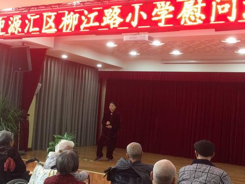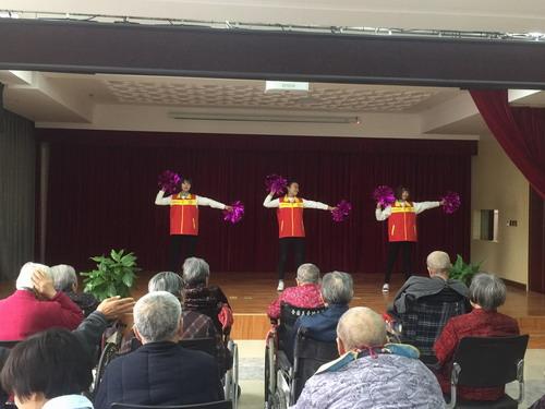上午9:00志愿者們準(zhǔn)時(shí)抵達(dá)老年公寓,在老年公寓的會(huì)議廳志愿者們?yōu)槔先藗儷I(xiàn)上了精心準(zhǔn)備的節(jié)目,老師的武術(shù)表演、歌曲、舞蹈贏得了老人們的陣陣掌聲,逗得老人們開懷大笑??吹嚼先藗冃腋5男δ?,志愿者們感到莫大的欣慰與喜悅。演出結(jié)束后,志愿者同護(hù)理人員一起把老人們護(hù)送到他們的房間,黨員志愿者們和老人們親切交流,幫助老人整理房間,打掃衛(wèi)生,給老人梳洗、剪指甲,和老人們聊家常,關(guān)切的詢問他們的身體狀況和目前的生活狀況,并把給老人們帶去的糕點(diǎn)一一送到老人手中。