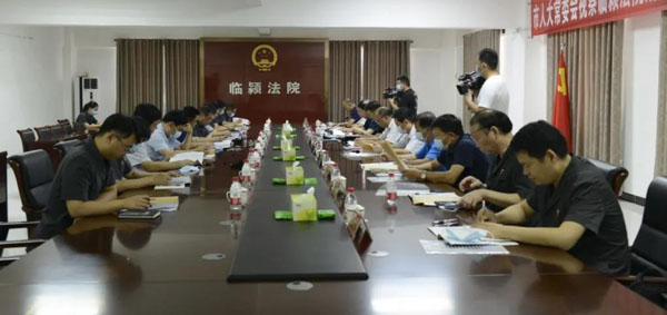 視察組一行在我院三樓會議室開展交流座談會。會上,黨組書記、院長王黎明從深入開展掃黑除惡專項斗爭、懲治危害食品藥品安全等涉民生領(lǐng)域犯罪、懲治電信詐騙等新類型經(jīng)濟(jì)犯罪、新冠肺炎疫情影響下的刑事審判工作、推進(jìn)以審判為中心的刑事訴訟制度改革、推進(jìn)刑事審判公開,開展陽光司法活動等七個方面就臨潁縣法院2018年以來刑事審判工作情況、存在問題和困難及下一步工作打算,作了詳細(xì)匯報。視察組成員針對我院人案矛盾、裁判文書說理、老舊審判樓改建等問題進(jìn)行了熱烈討論。