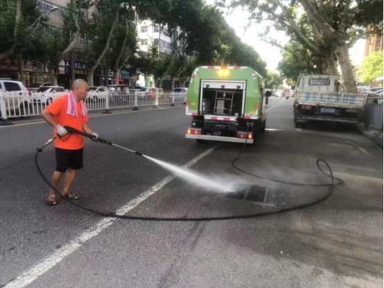環(huán)衛(wèi)人員沖洗窨井雨篦