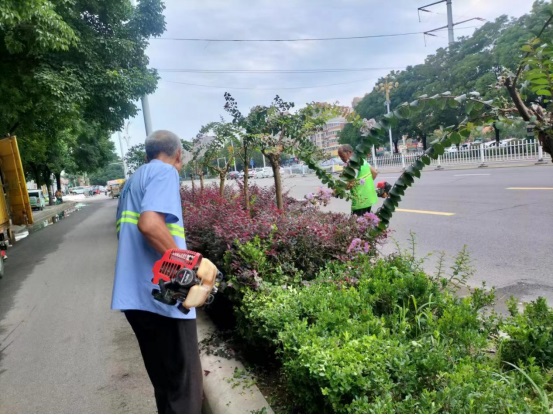 在市區(qū)道路兩側(cè),隨處可見園林養(yǎng)護人員忙碌的身影,他們頂驕陽戰(zhàn)高溫,精心剪枝、除草、澆水、防治病蟲害,用汗水詮釋著責任與堅守、守護城市濃濃綠蔭。同時,嚴格落實巡查制度,提前對高大喬木采取修剪、支撐加固等措施消除安全隱患。