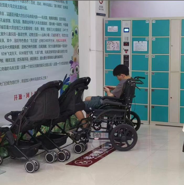 中秋節(jié)期間神州鳥園:一位游客坐輪椅玩手機很不文明。