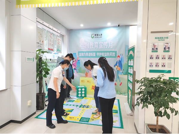 中國人壽壽險(xiǎn)漯河分公司黃河路營業(yè)廳內(nèi)設(shè)置了全國統(tǒng)一的“金融知識便利店”,分為活動(dòng)主海報(bào)、禮品區(qū)、金融機(jī)場互動(dòng)版塊、“八大權(quán)益”連連看互動(dòng)板塊,將金融知識融入妙趣橫生的互動(dòng)游戲之中。金融機(jī)場飛行棋游戲互動(dòng)版塊分為保險(xiǎn)專機(jī)、反詐專機(jī)、反洗錢專機(jī)、反非專機(jī),客戶朋友們輪流擲骰子前進(jìn)或后退,根據(jù)點(diǎn)數(shù)對應(yīng)位置進(jìn)行做俯臥撐、背古詩、蹲起、模仿動(dòng)物叫的游戲和學(xué)習(xí)金融保險(xiǎn)知識等。“八大權(quán)益”連連看活動(dòng)讓客戶朋友們?nèi)娴亓私庀M(fèi)者八大權(quán)益等知識,大家在歡聲笑語中輕松掌握金融防騙、反洗錢、防范非法集資、金融保險(xiǎn)知識等。公司對參與互動(dòng)游戲的客戶朋友們送上了中國人壽專屬的小禮品,讓客戶在參與中收獲知識與喜悅。同時(shí),寓教于樂的游戲項(xiàng)目有效提升了金融知識普及的覆蓋面與接受度,彰顯了中國人壽服務(wù)社會(huì)的責(zé)任擔(dān)當(dāng)。