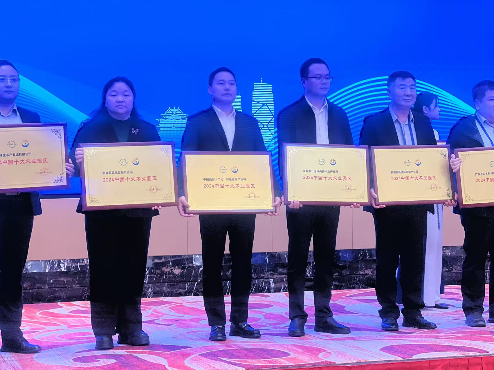 會議上,臨潁縣現(xiàn)代家居產(chǎn)業(yè)園榮獲“2024中國十大木業(yè)產(chǎn)業(yè)園”榮譽稱號,王志敏上臺領(lǐng)獎,并向與會人員推介我縣木業(yè)產(chǎn)業(yè)優(yōu)勢,誠邀企業(yè)來臨參觀考察。