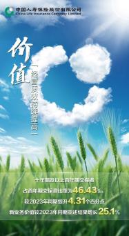 前三季度,中國人壽持續(xù)強(qiáng)化資產(chǎn)負(fù)債管理,積極推進(jìn)產(chǎn)品多元和業(yè)務(wù)形態(tài)多元,負(fù)債質(zhì)量不斷優(yōu)化,長期發(fā)展基礎(chǔ)進(jìn)一步夯實(shí)。十年期及以上首年期交保費(fèi)保持快速增長,占首年期交保費(fèi)的比重為46.43%,較2023年同期提升4.31個百分點(diǎn);新業(yè)務(wù)價值保持快速增長,較2023年同期重述結(jié)果增長25.1%。
