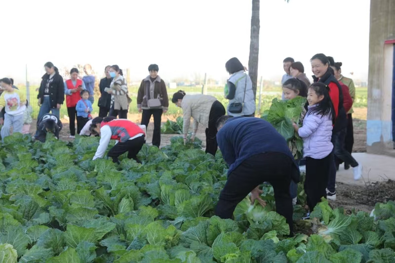 緊接著政協(xié)委員聯(lián)絡(luò)服務(wù)中心智耀忠主任,政協(xié)常委師耀美、楊英偉等和大家一起到白菜地動手采摘白菜,讓孩子們學(xué)會愛惜糧食,懂得“誰知盤中餐,粒粒皆辛苦”,更為孩子們提供了一次難得的勞動體驗和感恩教育。