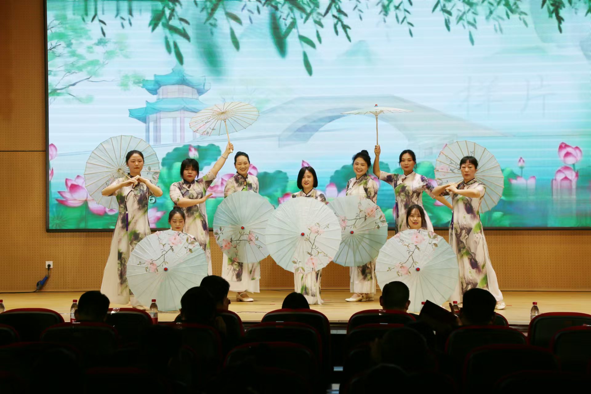 伴隨著歡快的音樂,本次聯(lián)歡會(huì)在開場(chǎng)舞《新年快樂》中拉開帷幕。節(jié)目?jī)?nèi)容豐富多彩,器樂獨(dú)奏《愛樂之城》、詩朗誦《源匯禮贊》、合唱《我的未來不是夢(mèng)》、武術(shù)表演《太極劍》、戲曲《清風(fēng)亭》選段等依次展開,演出現(xiàn)場(chǎng)高潮迭起、掌聲不斷,作品全部由文化系統(tǒng)工作人員自編、自導(dǎo)、自演,得到了領(lǐng)導(dǎo)和觀眾們一致贊揚(yáng)。