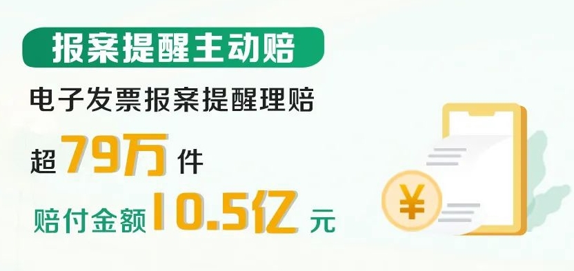 2024年電子發(fā)票報(bào)案提醒理賠超79萬件,賠付金額10.5億元。該服務(wù)模式相較于傳統(tǒng)的理賠服務(wù)模式,大大縮減了理賠服務(wù)流程,前置理賠服務(wù)的觸點(diǎn),提升了客戶的服務(wù)體驗(yàn)。