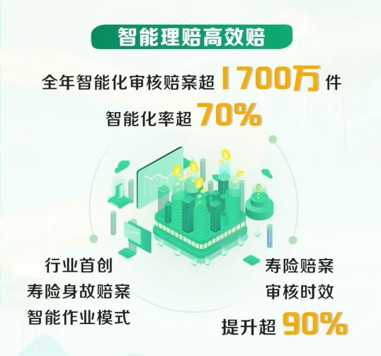 2024年全年,該公司智能化審核賠案超1700萬件,智能化率超70%。行業(yè)首創(chuàng)壽險(xiǎn)身故賠案智能作業(yè)模式,符合條件的壽險(xiǎn)賠案審核時(shí)效提升超90%。