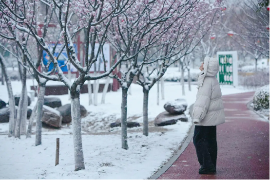 漫步在雪與櫻裝點的小徑,邂逅初春的浪漫。李鑫燕 攝