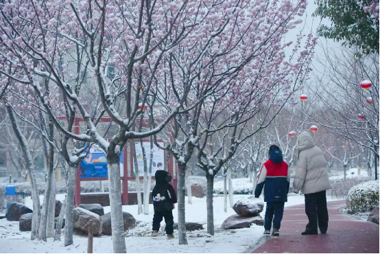 雪櫻相伴家人游,共享天倫意悠悠。李鑫燕 攝
